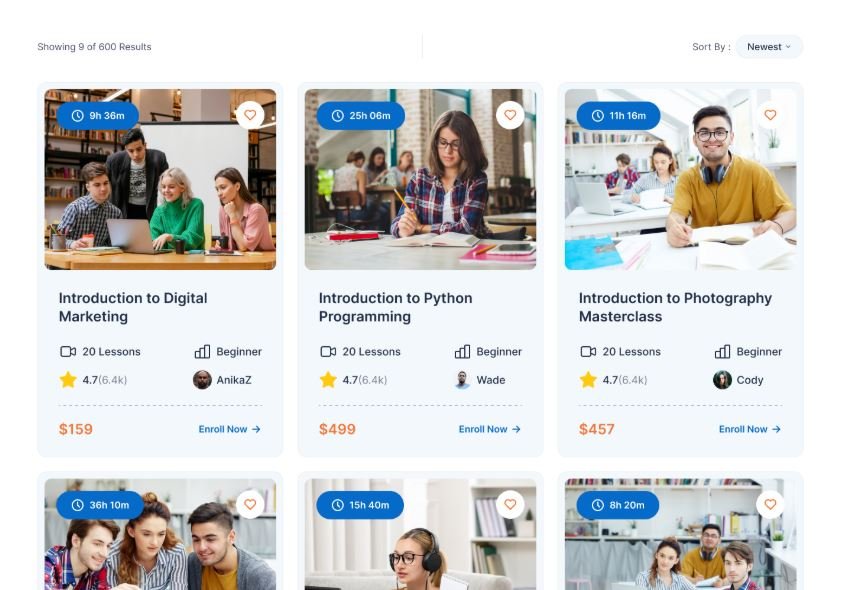 This combination allows us to build Udemy-style layouts, Skillshare-inspired learning flows, and edX-style structured education platforms that look great on all devices.